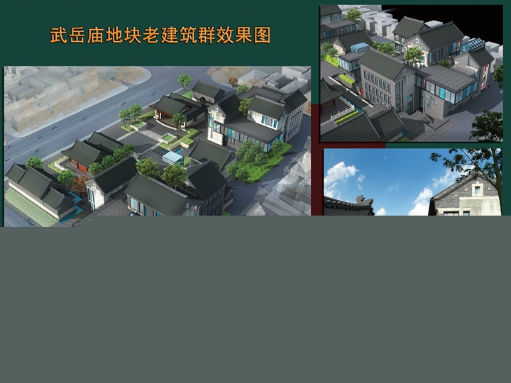 工程規(guī)模:武岳廟項目位于后宰門街東口,縣西巷西側(cè),占地面積 5600平方米,項目分為修繕老建筑和新建建筑兩部分,修繕老建筑的面積約879平方米,新建筑面積約4417平方米(其中包括地下車庫1440平方米)。