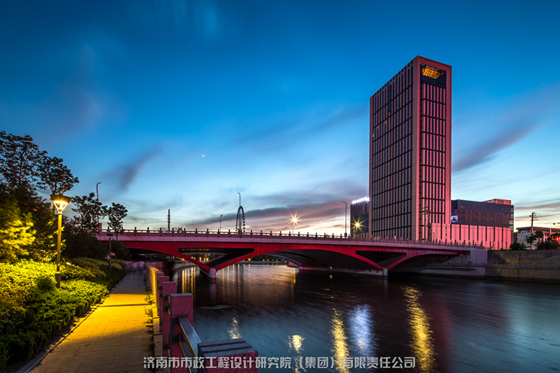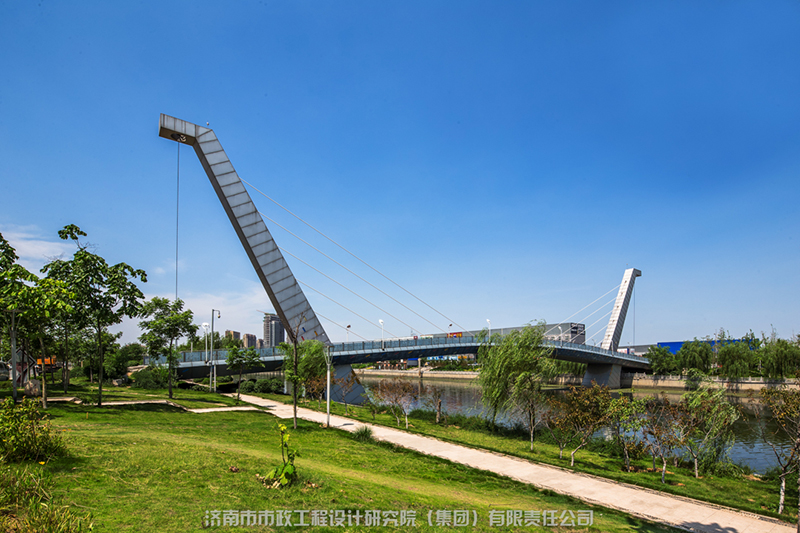 匯集了多種橋型,與小清河的自然環(huán)境、人文景觀有機(jī)地結(jié)合在一起,包括變截面連續(xù)梁橋、斜腿鋼構(gòu)橋、預(yù)應(yīng)力連續(xù)組合梁拱結(jié)構(gòu)、斜拉橋、中承式系桿拱橋等。在考慮結(jié)構(gòu)整體和交通功能的同時(shí),把握城市橋梁的景觀特性,做到工程和景觀的和諧統(tǒng)一。成為城市河道橋梁大量、有機(jī)結(jié)合的典范。